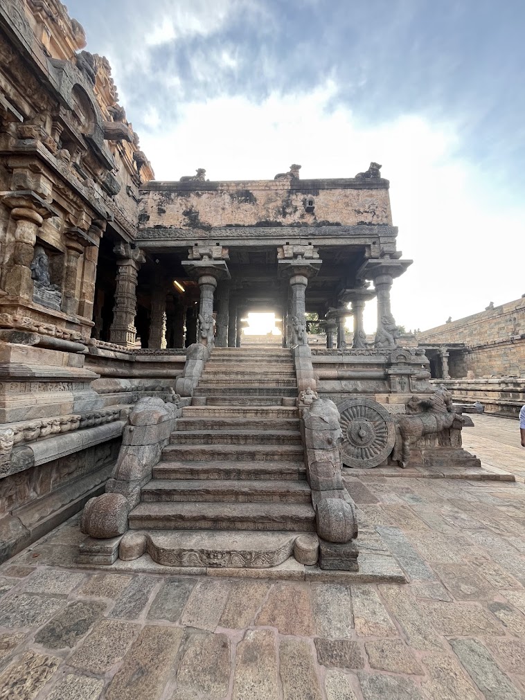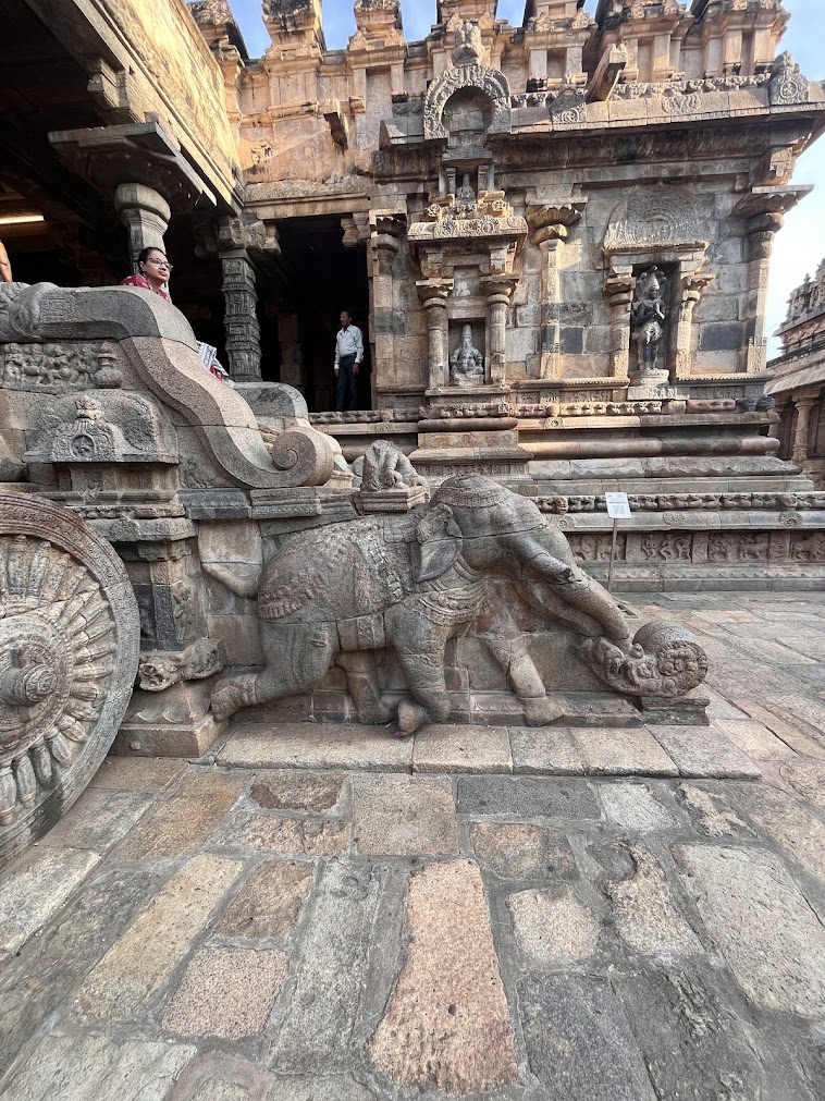 The temple doors had been thrown open now and, as we took our first step inside, it felt like we were going back into time, into an age highlighting the religious fervour, skills in temple construction and having them function as cultural centres. Got goosebumps imagining Raja Raja Chola II (who constructed this marvellous temple between 1143 and 1173 CE) would have walked this very path that we were traversing now, in 2025.
