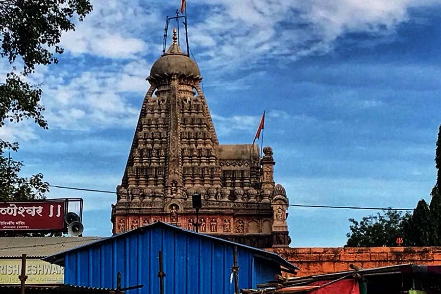 The legend behind Grishneshwar is that there was a childless couple, Brahmavetta Sudharm & Sudeha in Devgiri. Sudeha got her sister Ghushma, married to her husband with the advice that she should make lingas, worship them and then immerse them in the nearby lake. In due course, a baby boy was born to Ghushma but she continued her rituals. The boy grew into a man and one day, out of jealousy, Sudeha killed him and thew the body into the same lake. Ghushma continued with her rituals believing in Lord Shiva. One day, when she was immersing the linga, she saw her son walking towards her. Shiva appeared too and narrated what her sister had done. Ghushma pleaded that her sister be forgiven. Pleased, Shiva granted her a boon and Ghushma asked HIm to stay in this place as Grishneshwar –The Lord of Compassion. Though this temple is mentioned in the Puranas, it was destroyed by the Delhi Sultans in the 13th-14th century AD and rebuilt by the Marathas in the 16th century AD, only to be destroyed by the Mughals. Ahilyabai of Holkar built the current temple structure in the 18th century AD. Evidence of Islamic influence can be seen in the surrounding monuments in the picture.