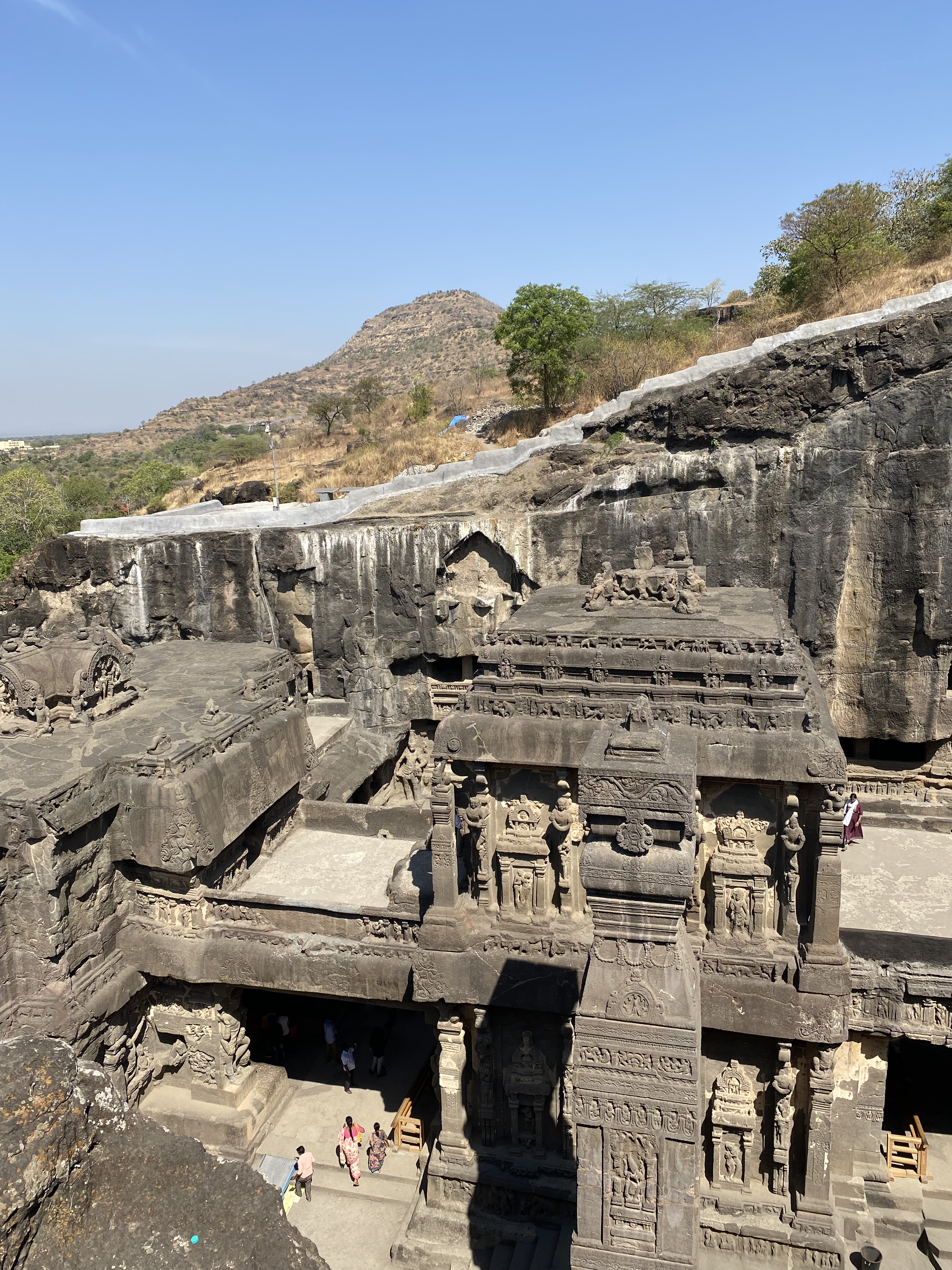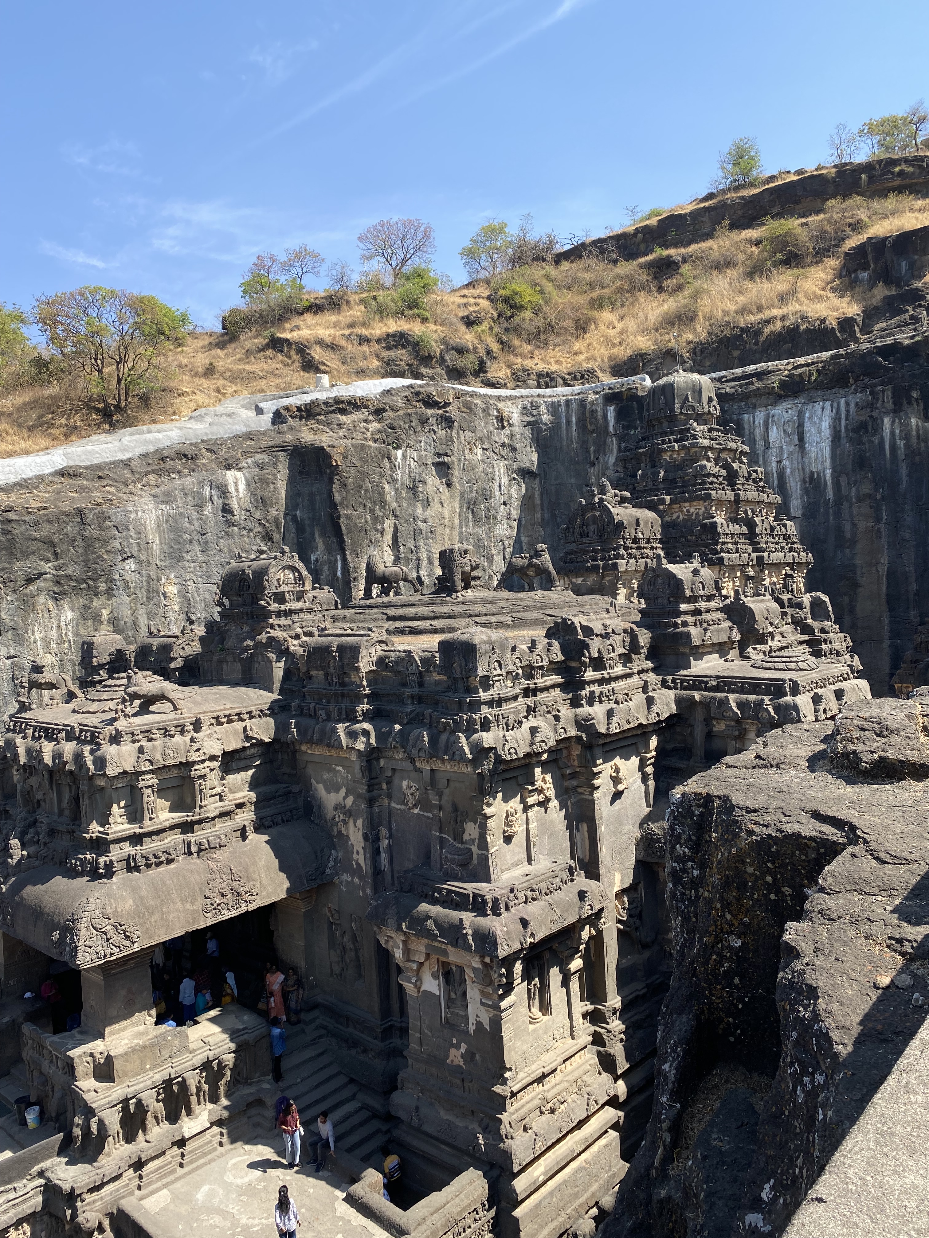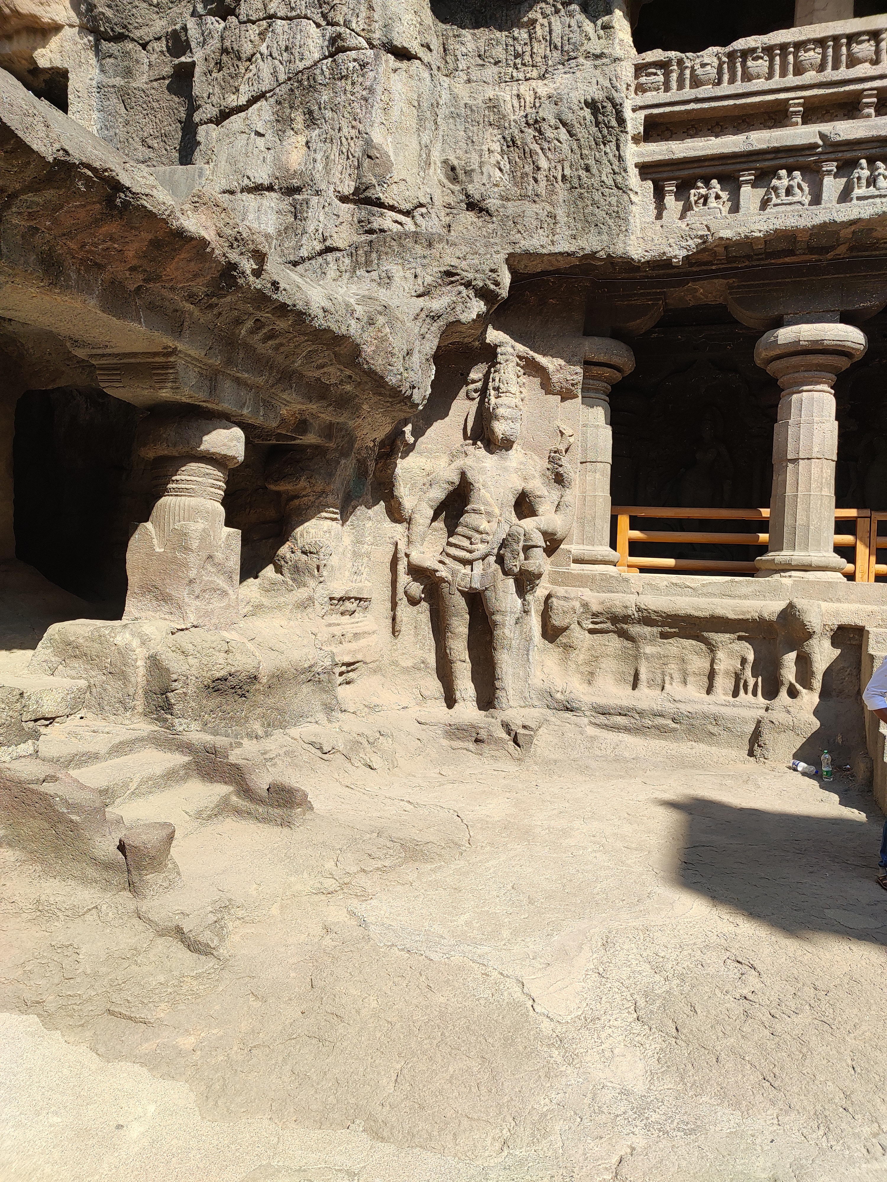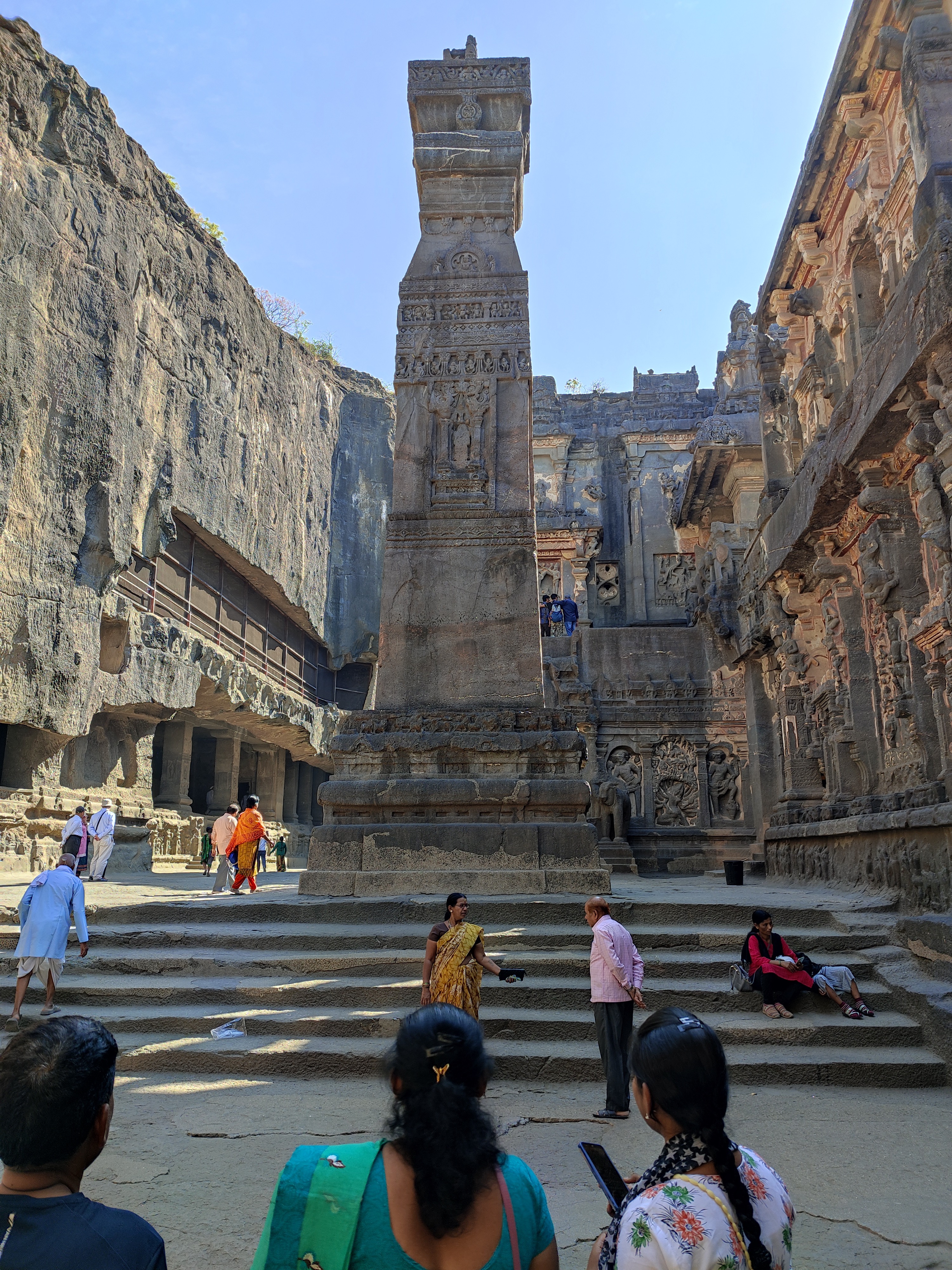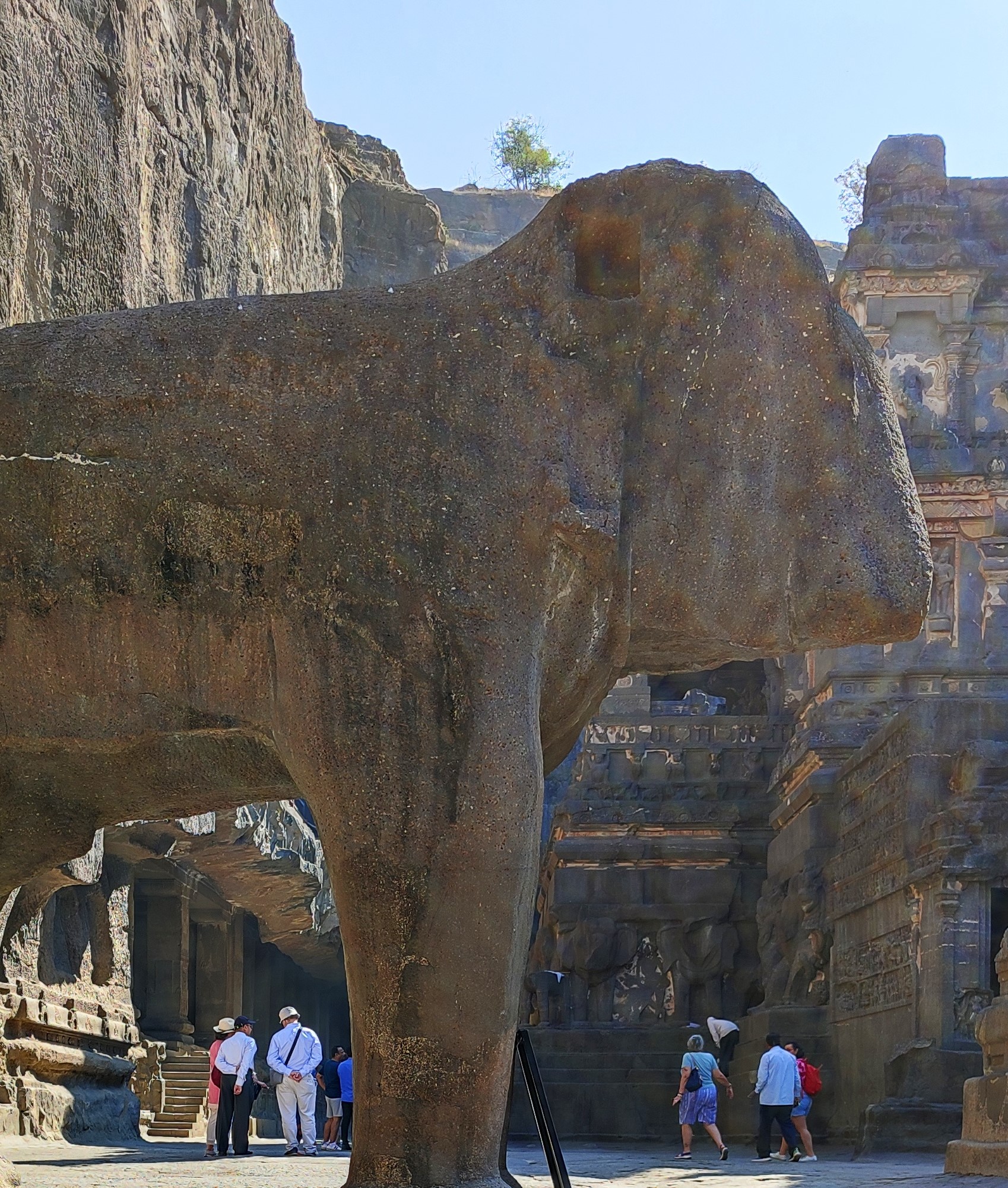 As we walked around the well-manicured lawn, we found ourselves right in front of Cave 16 – Kailasa Temple. Caves 17 to 30 to the right and 1-15 to the left in a sweeping arc.