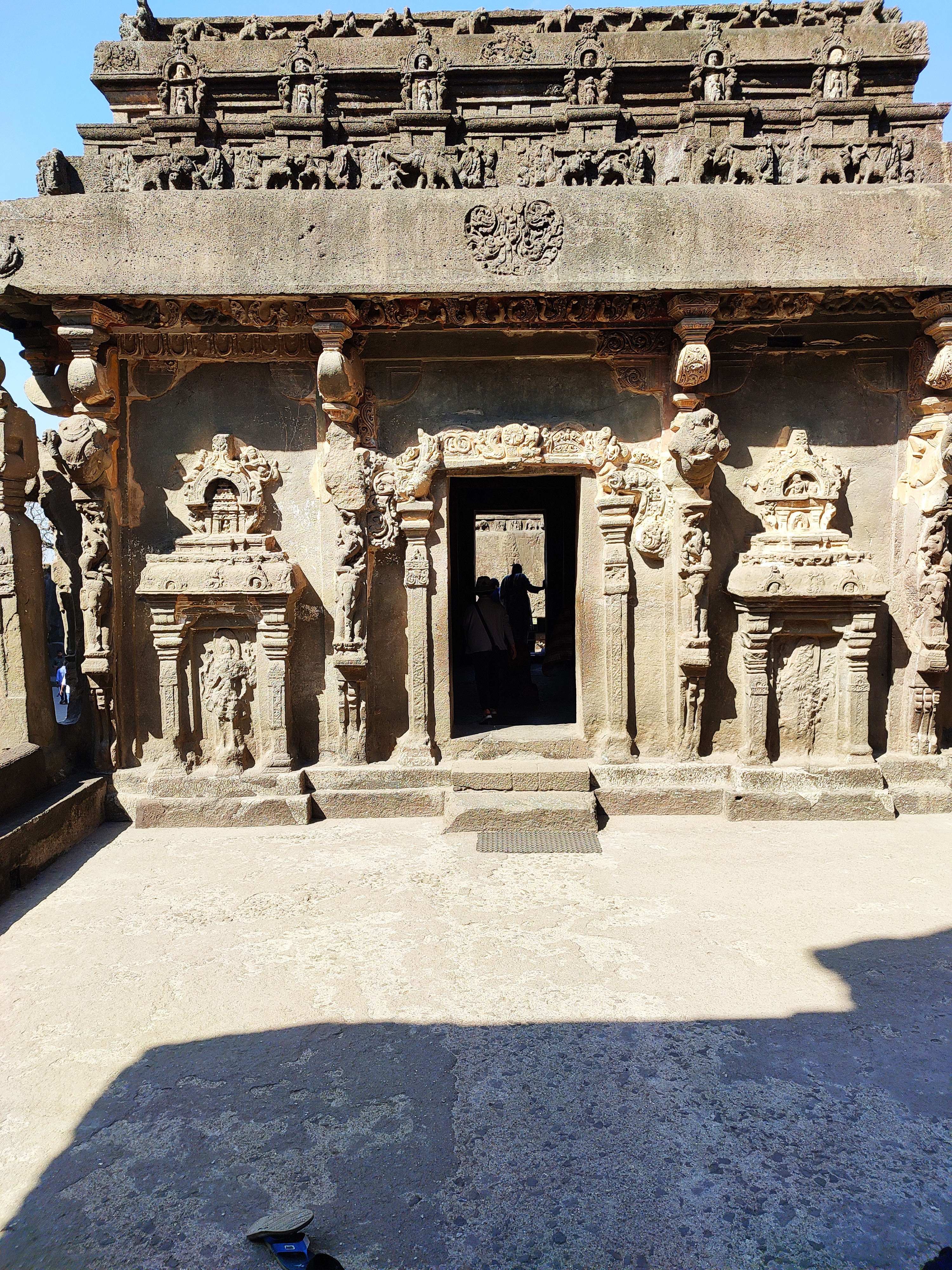 The tour plan for Day 2 was Ellora, Grishneshwar jyotirlinga, Bhadra Maruti Temple and Daulatabad Fort (optional). We decided to skip Daulatabad Fort as it would involve a lot of walking on the incline, and in the afternoon heat, it would never be enjoyable. So why not first thing in the morning, you may ask? Well, obviously the start to the morning should be with a temple visit, right? So, even though, it was Ellora’s marvels that we wanted to experience, it was the Lord’s blessings that we first sought.