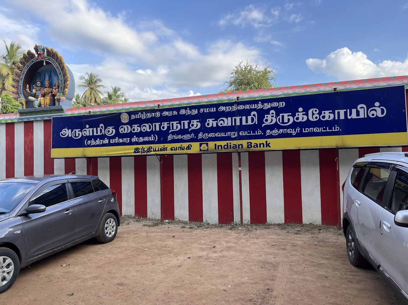 Set off at 6 AM and out first visit was to Thingalur to have darshan of Chandran, the Moon God. A drove of a little over an hour and branching off from the Kumbakonam-Tiruvaiyaru Road, we were at the little village of Thingalur.