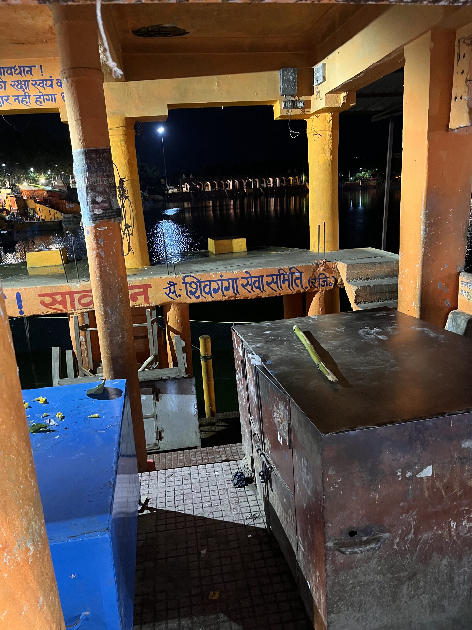 Another peculiarity here is that the temple is also a Shaktipeeth, a place where Sati’s heart fell and both the Shivalinga and Shakti are housed in the same sanctum. While the lingam is placed on Sati’s heart, Shakti is represented by a white line surrounding the Shivalinga. In other jyotirlingas where there is a Shaktipeeth too, Shakti is worshipped in a separate shrine inside the temple complex. Phew! We managed to come out after a fleeting darshan and quick puja, with our valuables intact.