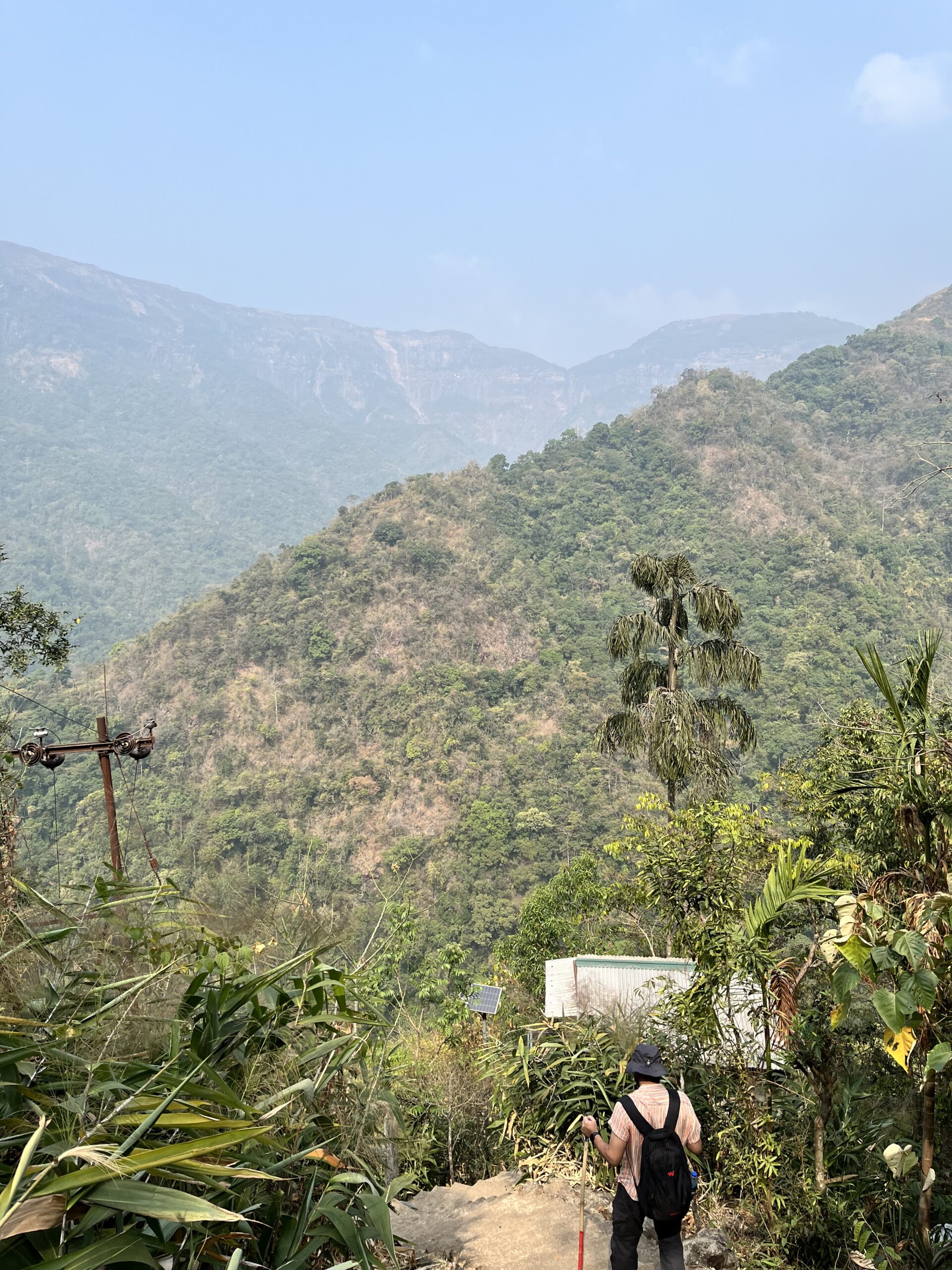 Had a brief discussion among ourselves. Three of us, my younger daughter and son-in-law plus yours truly decided to undertake the arduous trek the following day. Rest of the family would relax at the hotel. When informed, our driver the following day, too tried to dissuade us, saying ‘ Bahut time lagega, difficult hai, etc’. We insisted, and he drove us to the starting point at Tyrna, a good 3-hour drive from Shillong, where were staying, passing Cherapunji on the way. On hindsight, it would be better to stay in Cherapunji or better still in homestays along the route to the Double decker bridge. It could make the trek easier, perhaps.
