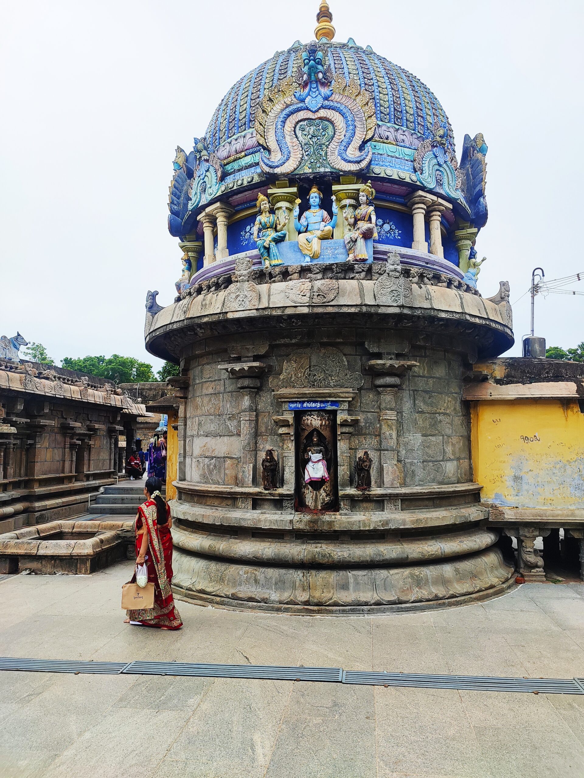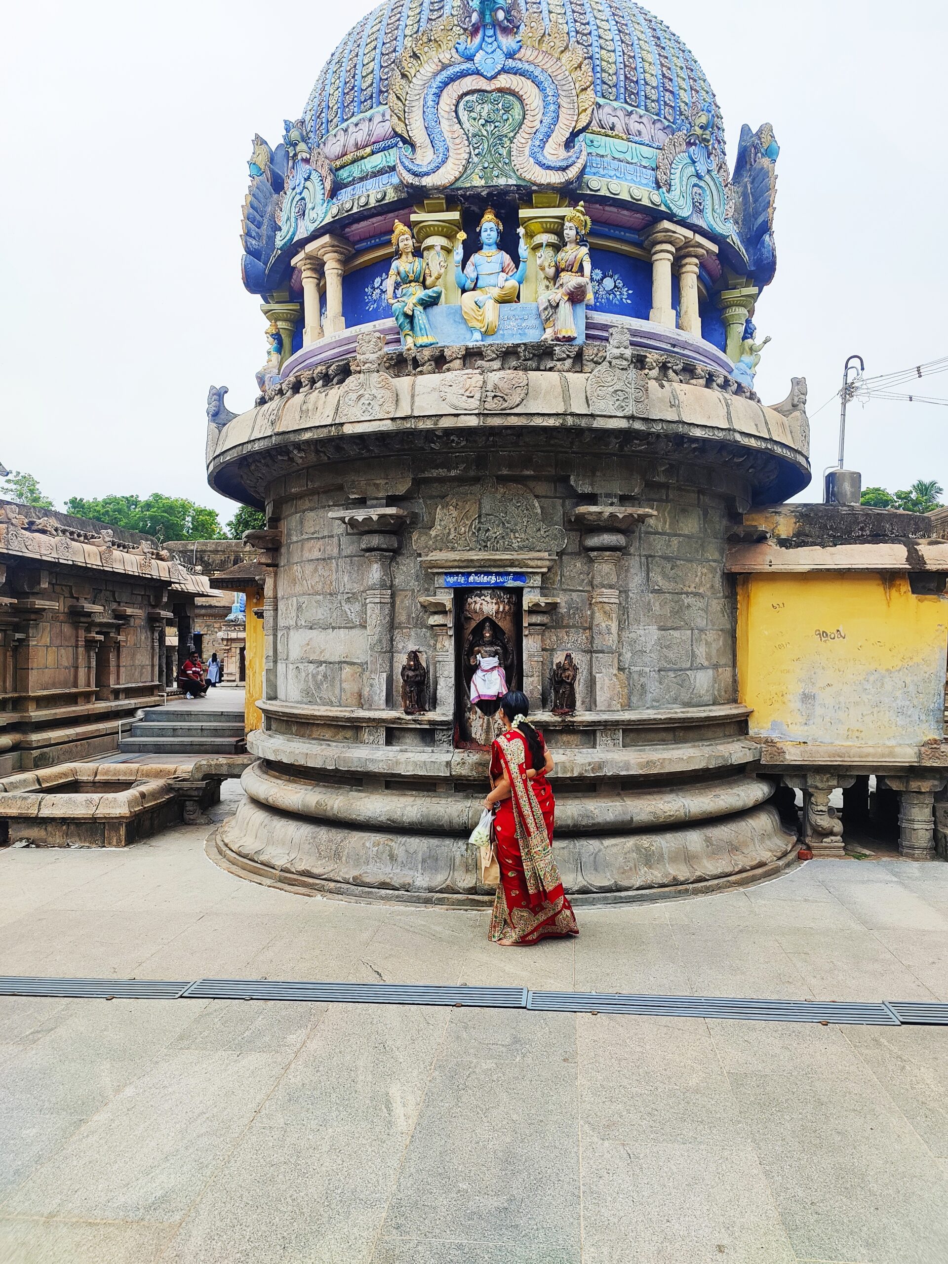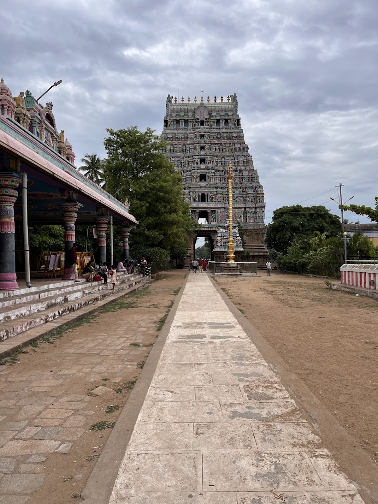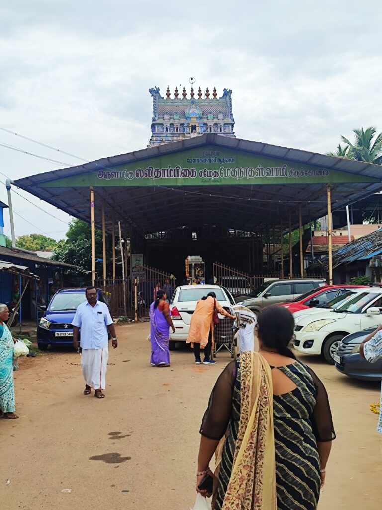 The next temple on our schedule was at Thirumeeyachur — Meghanathaswamy temple but again, more renowned as the Lalithambigai temple. A fairly long drive of close to 90 minutes along the main highway and then along narrow , winding country roads and we were in the pretty village of Thirumeeyachur.